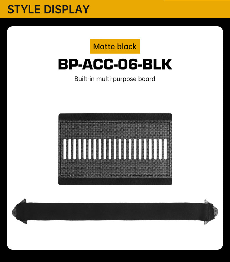 A Placa Multifuncional Integrada Operational MOLLE é um painel modular projetado para organizar e transportar equipamentos de forma eficiente.